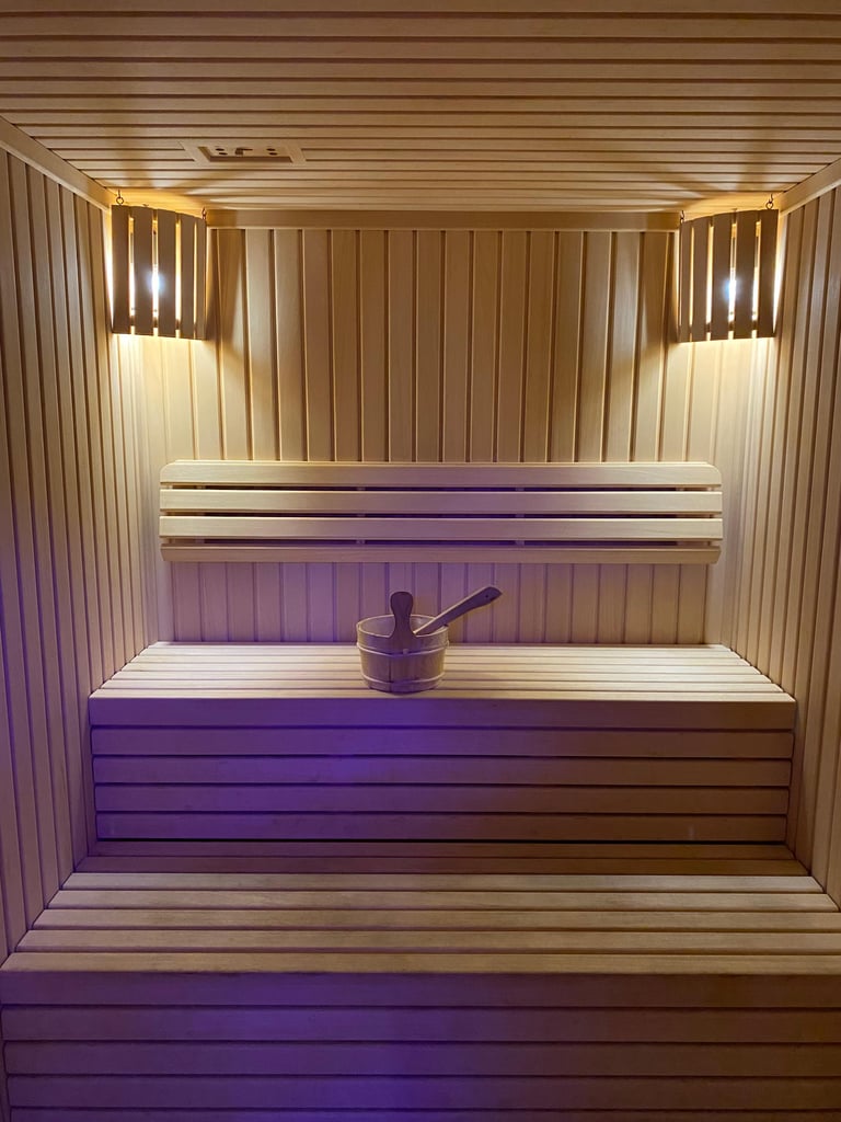 a wood-lined,, high-temperature (70–100°C) room designed for relaxation, detoxification, and health benefits, often featuring electric heaters with stones for steam