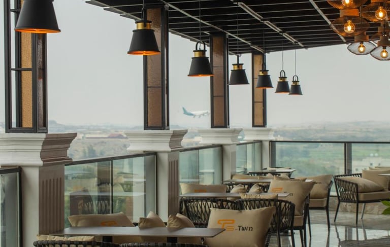 It has a prime location on the airport road, a beautiful view, and high-end services... I visited it today and it was a successful visit. I enjoyed the café and the beautiful view very much, as it is on the fifth floor. A hotel that needs to be visited more than once.